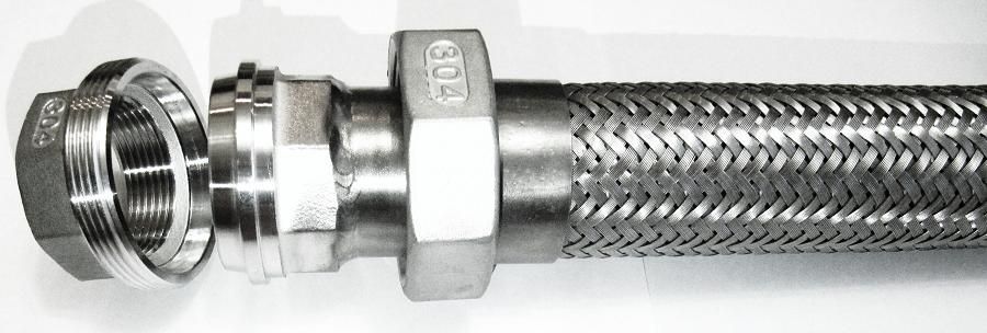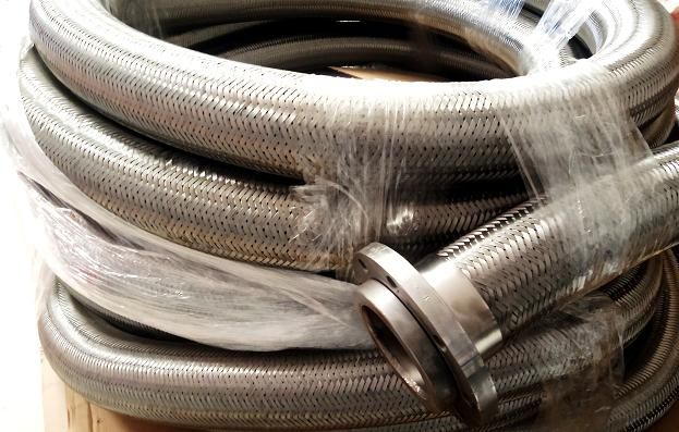 2) Для повышения давления применяется оплетка из нержавеющей проволоки. Маленький диаметр к примеру 1 дюйм без оплетки выдерживает рабочие давление 16 атм. Металлорукав высокого давления из нержавеющей стали с 1 слоем оплетки выдержит 40 атм., с 2 слоями 80 атм., с 3 слоями 120 атм. Способ плетения, марка и толщина также влияют на рабочие давление металлорукава высокого давления из нержавеющей стали с фланцами .